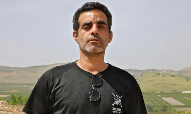 Nissan Zeevi, 40, has spent the past six months working as a first responder in Kfar Giladi, a kibbutz that grows apples and avocados. His wife and two young boys are living near the Sea of Galilee and are yet to come home; it’s just him, bulldog Joy, and his M16 rifle, keeping an eye on the Lebanese villages and Hezbollah outposts clearly visible from the garden, just a few kilometres away.