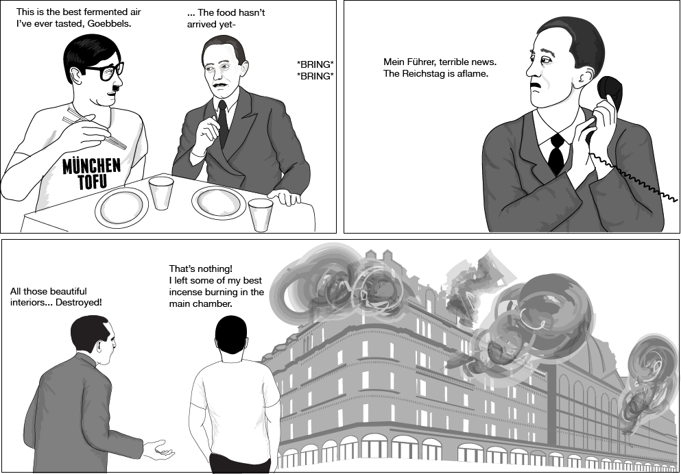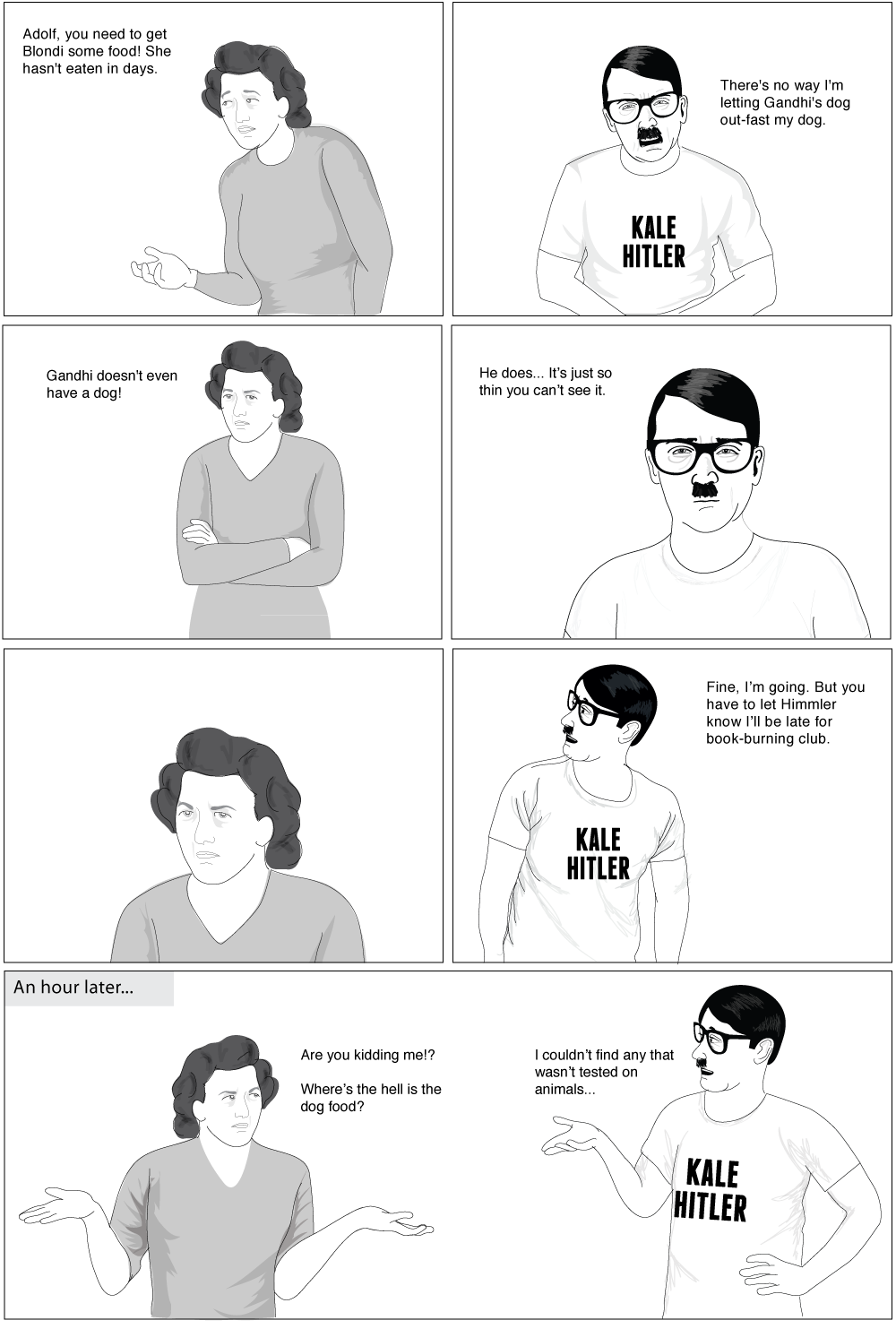 “Hipster Hitler” is a webcomic, which has recently released a book compilation. It features Hitler in a number of “humorous” situations, wherein he acts in a hipster fashion. It mixes in many lies about the Reich, and plays up the angle that Hitler was something of a nerd. It is basically designed to make fun of hipsters, who the authors apparently view as overly uptight and dogmatic in their beliefs, a characteristic attributed to Hitler by the Jews.