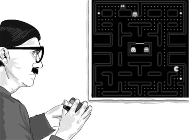 The widely available book shows the former German Chancellor wearing black-rimmed glasses, eating cashew nuts, playing Pac-Man and riding a bike with a basket on the handlebars.