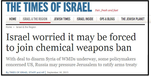 According to that Jewish newspaper, the “deal to strip Assad of his chemical weapons stockpile has some policymakers in Jerusalem concerned that Israel may be forced to sign an international chemical weapons ban treaty, something it has been unwilling to do until now.”
