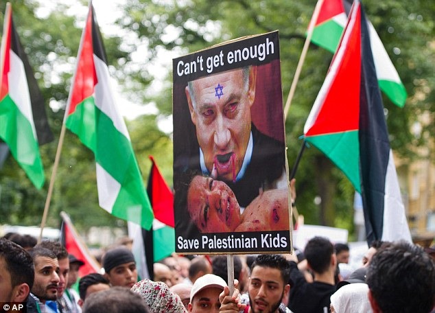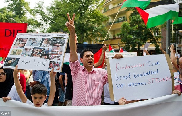 In Germany, there have been reports of protesters chanting ‘Jews to the gas chambers’. Police in Berlin have banned race-hate slogans that reappeared after being originally used in the days of the Nazis.