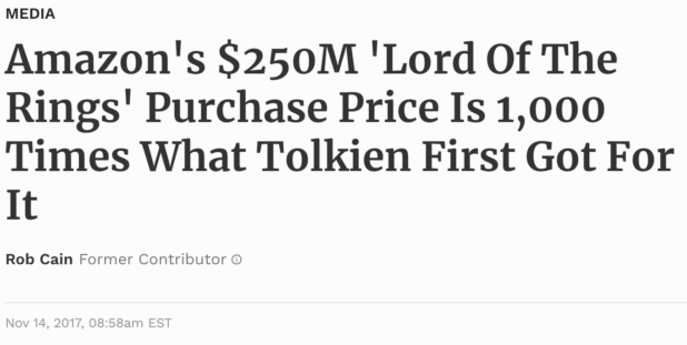 Tolkien originally sold the movie rights to LotR for – let’s see here – oh – 1000 times less than Amazon paid the Jews for them.