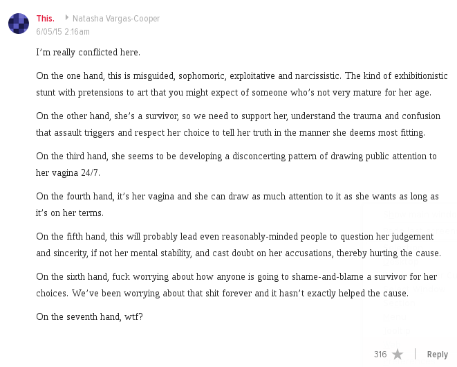 Has Emma Sulkowicz bitten the hand the feeds?