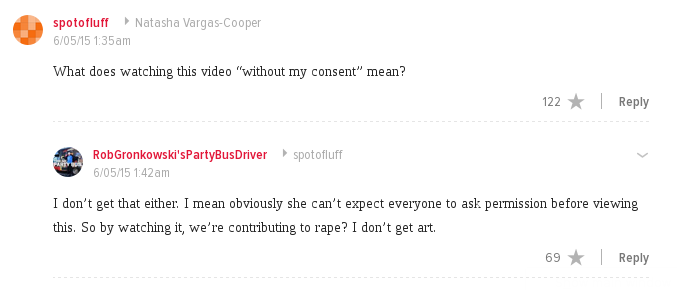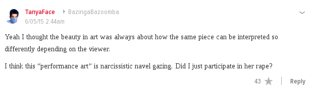 Shockingly, even Jezebel’s comments section was shocked, confused and outraged by the Chink-Jew (Jenk?) releasing a porno and claiming it was an art performance meant to show that everyone in the world raped her at once (or whatever).