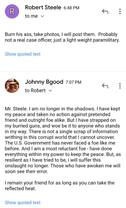 And he’s showing a conversation that he’s had with people who he claims work for the CIA.