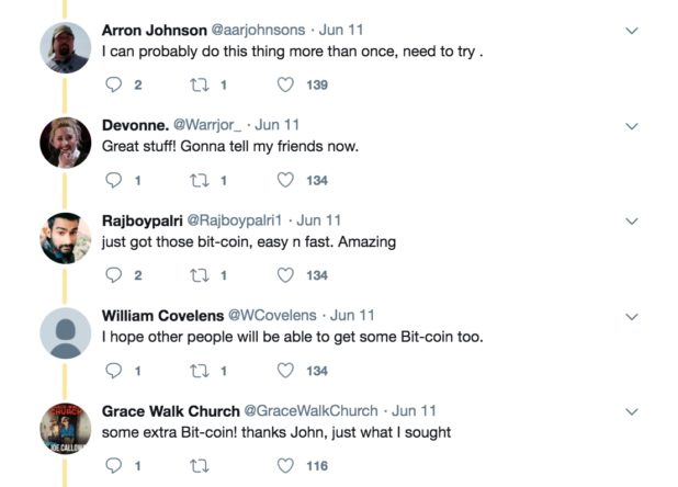 Furthermore, all the replies in his Twitter feed appear to be bots talking about bitcoin.