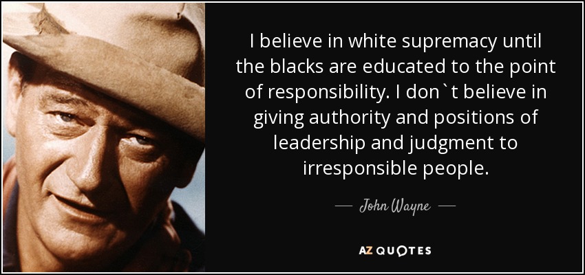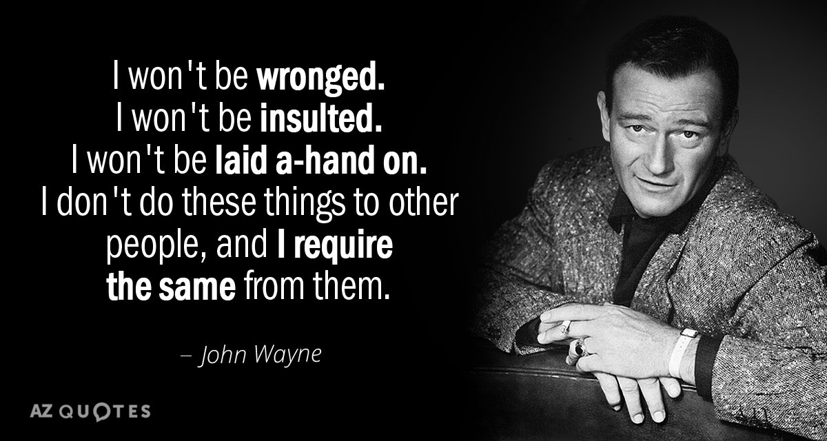 I have told you if you are a faggot millennial or younger, raised by women, the best thing you can do is watch John Wayne movies, and just act like he acts. That is really and truly the single best thing you can do.