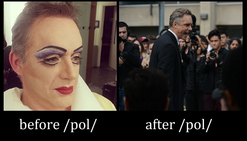 Jordan Peterson had me fooled, I must admit. I thought that he was trying to fight the Alt-Right. Now, I realize that he is playing the long game. He was always trying to get us to hone our arguments and in true Socratic fashion to tease out the truth slowly and logically to red-pill his fans. The man is /pol/ incarnate.