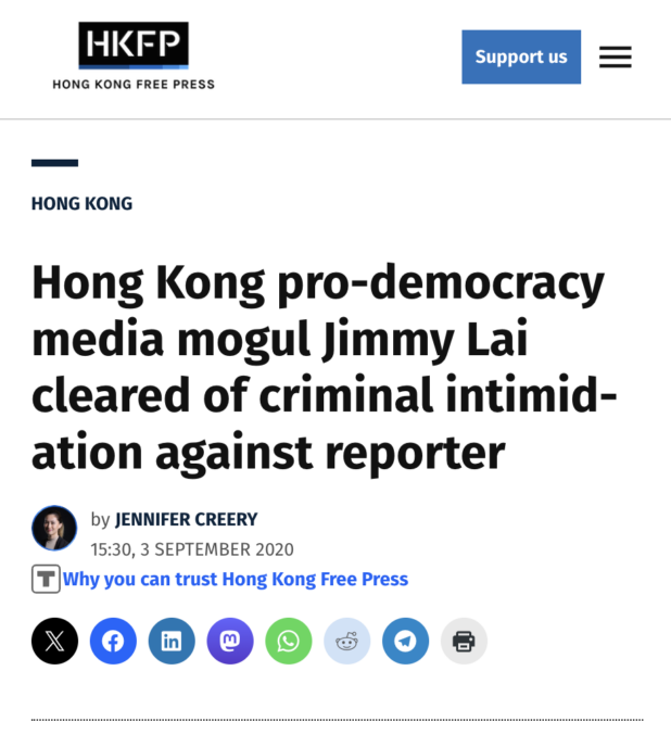 He claims that Jimmy Lai’s prosecution is not being covered by the American media.