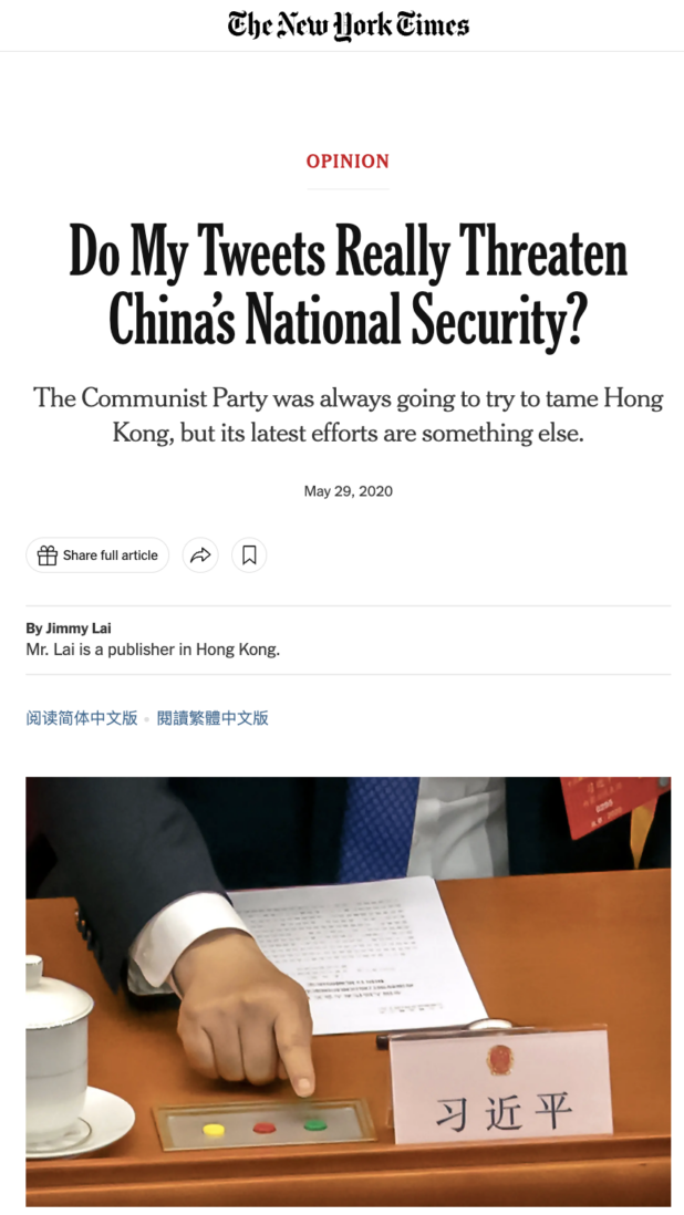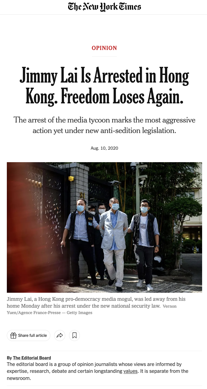 The Times, along with every single other American publication, does regular updates about Jimmy Lai. DC_Draino is simply lying outright.