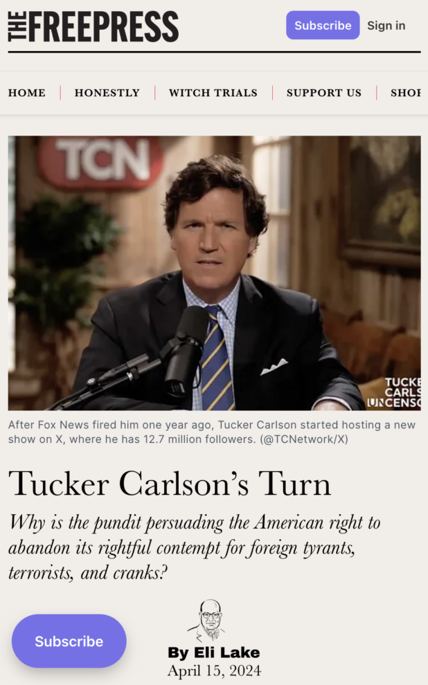 The Eli Lake article is indicative of the larger attack on Tucker over the last two weeks. There are dozens of these articles, and the Jews are all over Twitter attacking him.