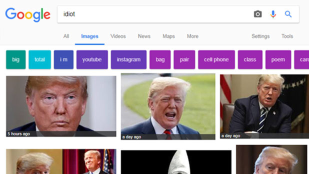 Mastrangelo asked, “What does it say about Google when the CEO, under oath, cannot answer for why when you Google image the word ‘idiot,’ photos of your father, the President of the United States, pops up?”