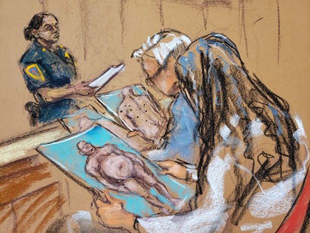 The jurors were instructed to review each photo while holding them in a fashion where the crowd inside the courtroom couldn’t get a peek. Jurors No. 11 and 12 appearing to wince as they peered upon the images of a naked Weinstein, who showed no signs of owning a gym membership.