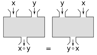 After a pause, my brain, perhaps with the tumor’s help, said: “transitive” is most commonly a grammar term (i.e., “transitive verb”), and “commutative” is something related to math. When we add “property” to them, they’re math terms which can be applied to sociological or psychological phenomenon, John Nash style. In context, it basically means “new thing in environment = existing thing in environment.”