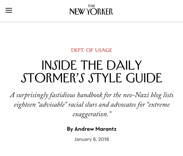 The reason I was obsessed with the media coverage was for the benefit of my own readers. The media coverage was part of the Daily Stormer multimedia internet experience. The journalists believed that I was a cartoon neo-Nazi, because they are like babies who believe in the Boogieman, so they would print anything I wrote with a straight face. I could target them with stuff I knew they would print, and then add these ridiculous elements which often didn’t even make sense, and they would print it, and then my readers would see it, and it would become part of the multimedia internet reading experience of the Daily Stormer.