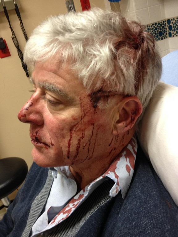 Andrew, who currently owns an environmental marketing firm called GreenMark, received nine stitches for a gash on his head. He also sustained several cuts and abrasions on his face.
