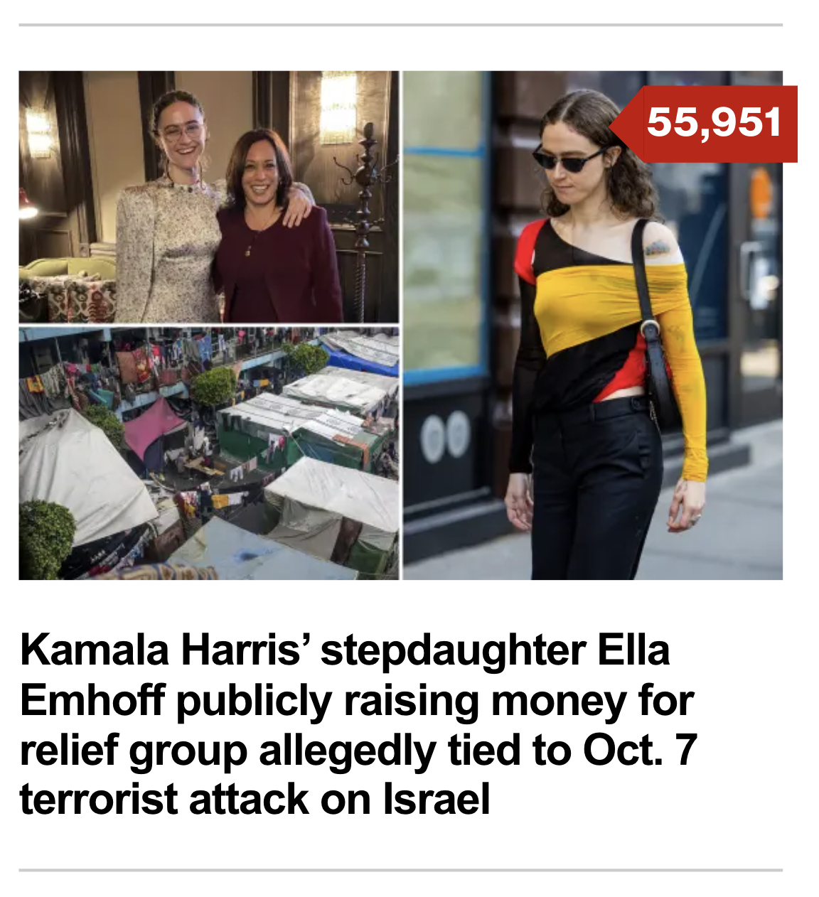 That headline implies that Kamala’s Jewish stepdaughter is funding Hamas. That’s not the actual story (I can tell you that without reading it), but that’s what the headline purposefully implies.
