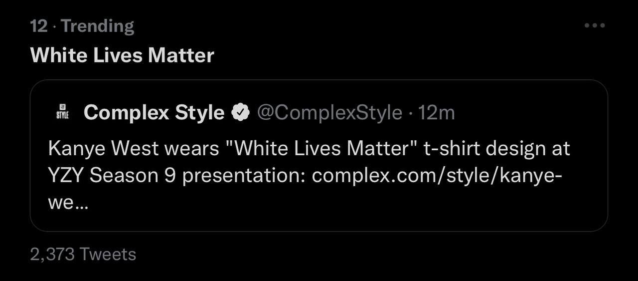 Kanye understands the implications here, and I think it is safe to assume that he is officially declaring himself the leader of the white race, and that his plan is to do extreme, black-style riots using white people in order to forward his stated anti-Jewish agenda.
