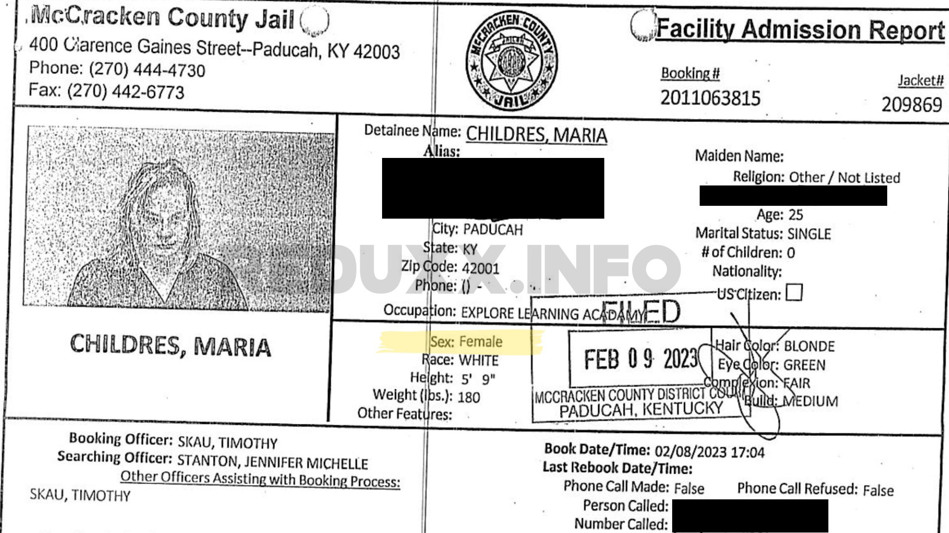 While Childers was initially marked as a “male” by both police and the jail, internal documents obtained by Reduxx reveal that his recorded sex was later switched to “female” by the McCracken County Jail.