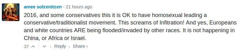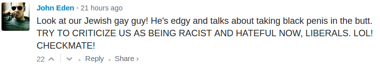 Breitbart recently published an article about our Alabama Boys passing out fliers at a MILO event at the University of Alabama, and every single top comment (as voted on by the users using disqus) was against MILO and for us.