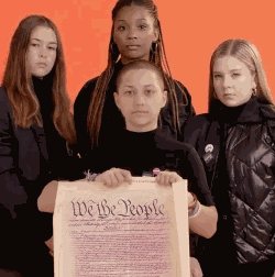The skinhead (nonracist) 56 percentcess Emma Gonzalez filmed a thing where she was ripping up a shooting target and someone memed it up into a gif of her ripping up the US Constitution.