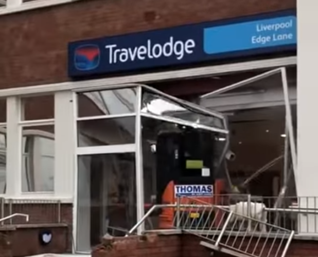 A disgruntled Brit plowed a digger into the lobby of a Travelodge in Liverpool, after reportedly not receiving pay for construction work on the hotel.