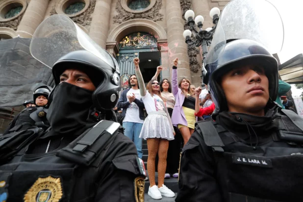 Trans activists celebrate in front of the Congress of Mexico in Mexico City, 18 July 2024.