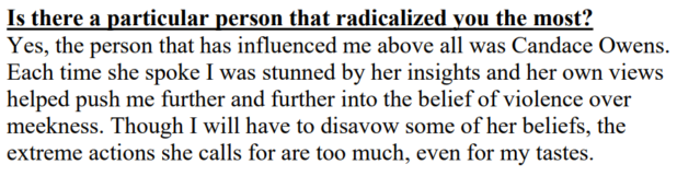 Like Uncle Ted, we should be sure to honor his sacrifices by carefully considering what he wrote. The best thing about it is that he reveals in his writings the single source of his radicalization that lead him to engage in total race war: Candace Owens.