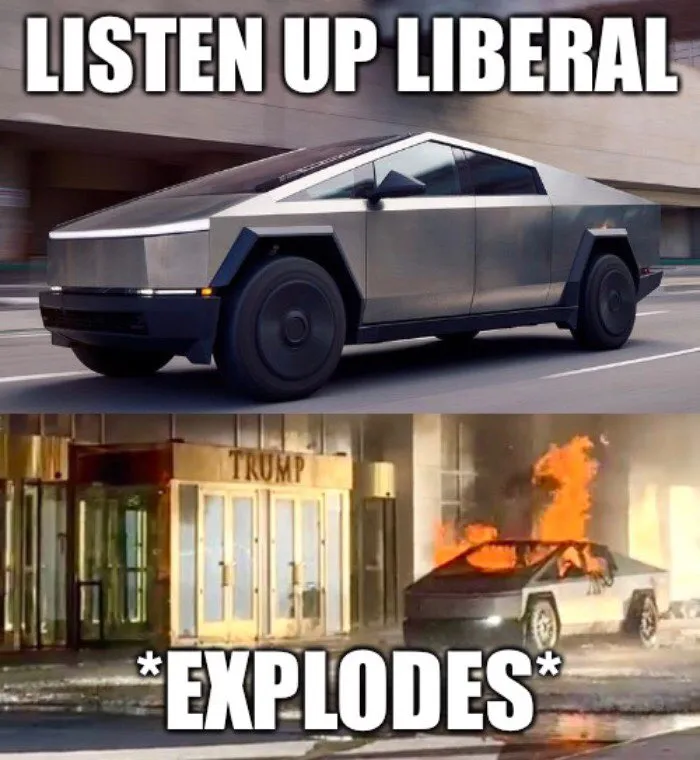 I would be less surprised if Elon did this himself in order to make himself a victim and distract from his terrible publicity situation. In fact, that wouldn’t really surprise me at all. He probably installs “remote detonation” systems in these cars. (It wouldn’t be a literal “explosion button,” but rather a system that causes the “engine” to overheat and can be used to start a fire.)