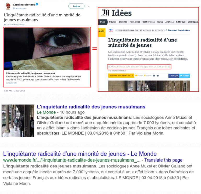 One quarter of secondary school pupils questioned do not completely condemn the attacks against Charlie Hebdo and the Bataclan, 80% think religions cannot be mocked, 68% think the media haven’t told the whole truth about the 2015 attacks, one third think it is “acceptable in certain cases to participate in a violent action to defend your ideas”.