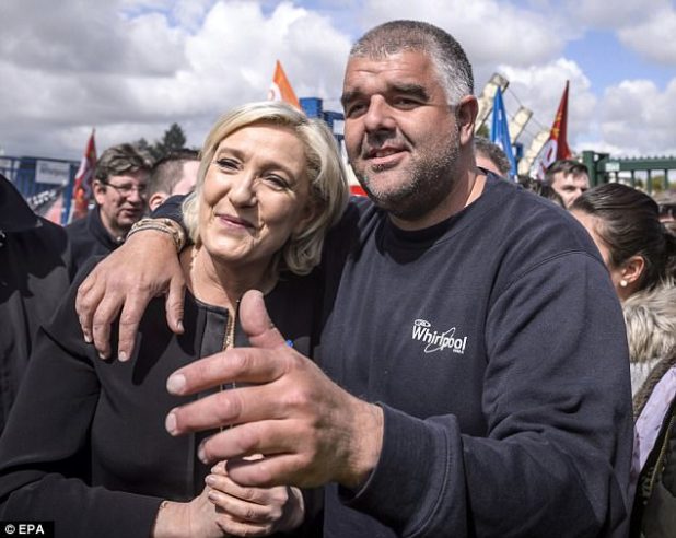 When Le Pen visited Whirlpool workers in the northern French city, she said: ‘I am for French workers.