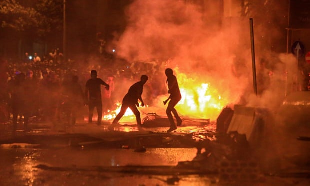Some protesters, including men in black hoods, blocked roads, set tyres on fire and used iron bars to smash storefronts in Beirut’s affluent downtown district.
