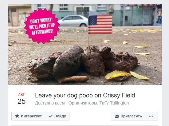 Tuffington, a 45-year-old artist and designer, created a Facebook event page based on the concept, and the dog owners of San Francisco responded in droves. Many have declared their intention to stockpile their shitpiles for days in advance, then deliver them in bags for the site. (The group is also planning to reconvene on Sunday to “clean up the mess and hug each other”.)