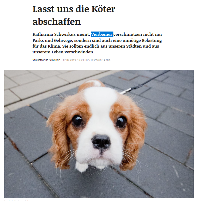 Katharina Schwirkus says: four-legged friends not only foul parks and pavements; they are an unnecessary burden for the environment. They should finally disappear from our cities and our lives.
