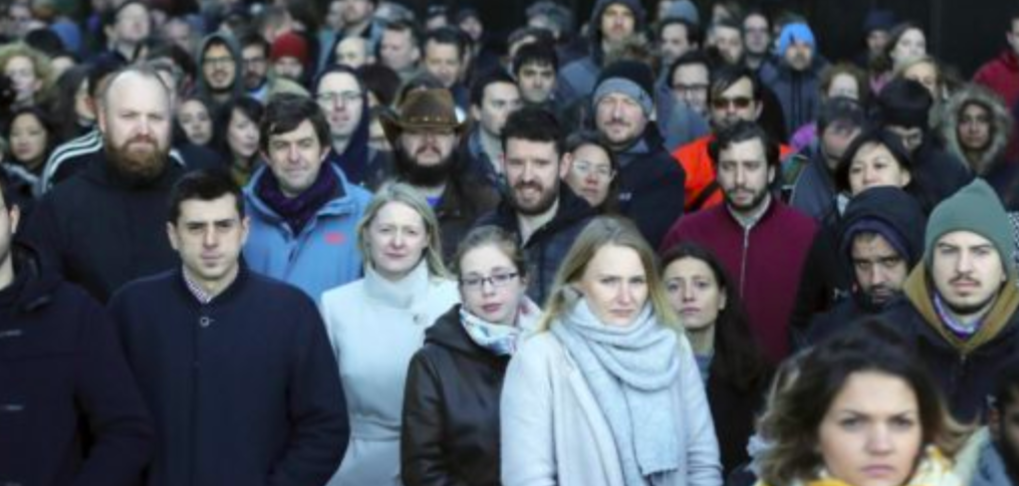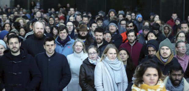 In Dublin, organizers used megaphones to address the outdoor crowd of men and women, while in other places, workers gathered in packed conference rooms or lobbies. In New York, there appeared to be as many men as women out in the streets, while in Cambridge, Massachusetts, men outnumbered women by perhaps 6 to 1.