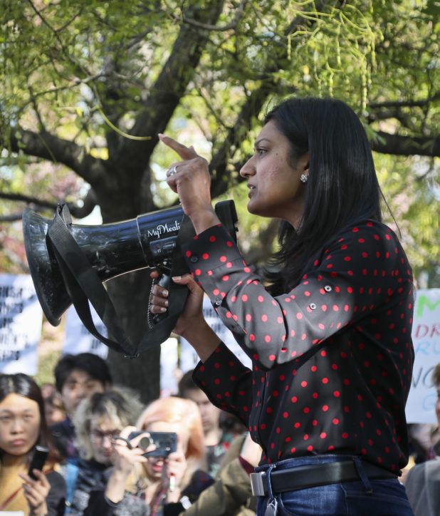 “Time is up on sexual harassment!” organizer Vicki Tardif Holland shouted, her voice hoarse, at a gathering of about 300 people in Cambridge. “Time is up on systemic racism. Time is up on abuses of power. Enough is enough!”