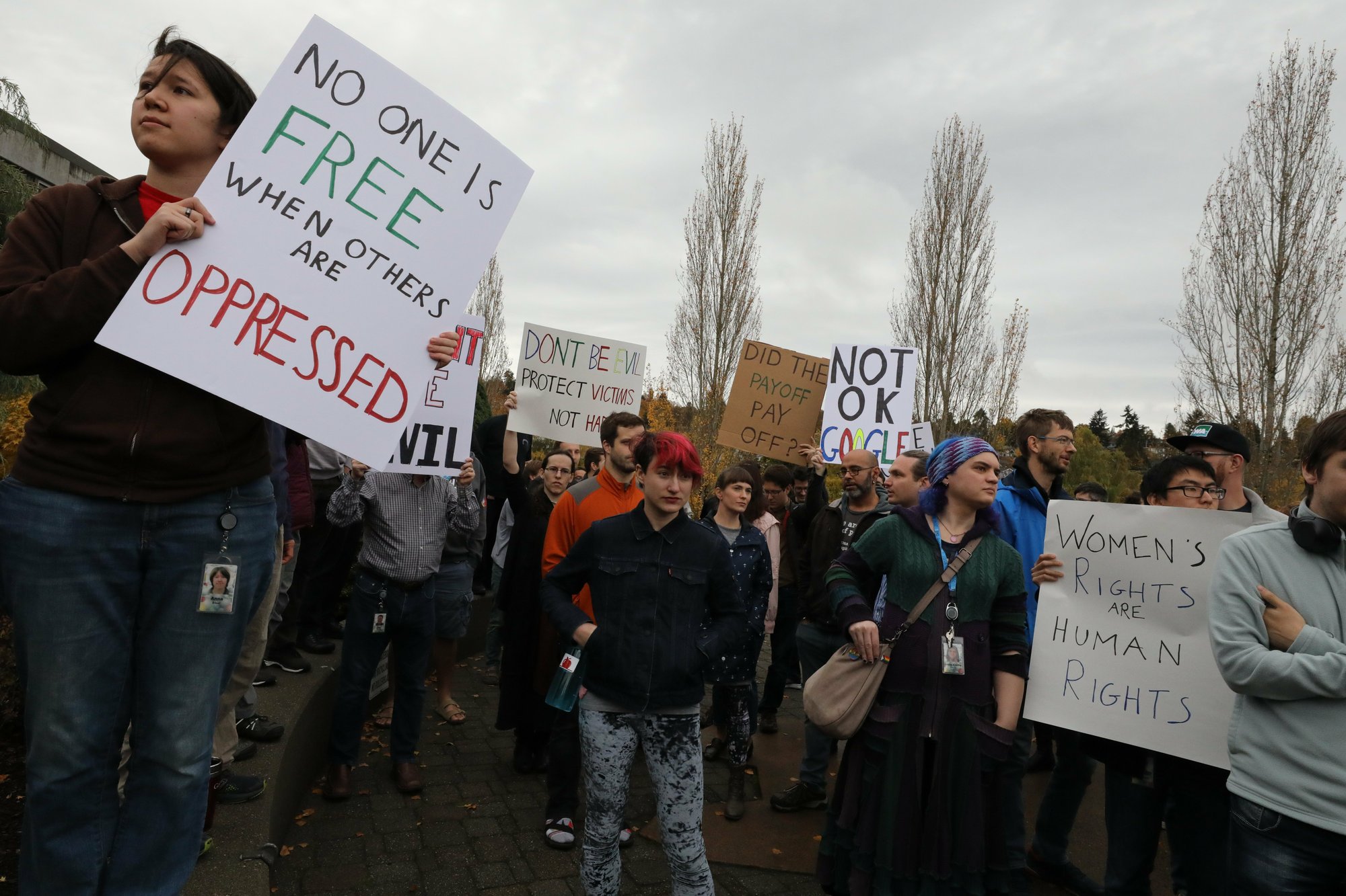 All this protesting started because they gave a severance package to the Jew who created Android, just for telling some skank in an email that she was his property.