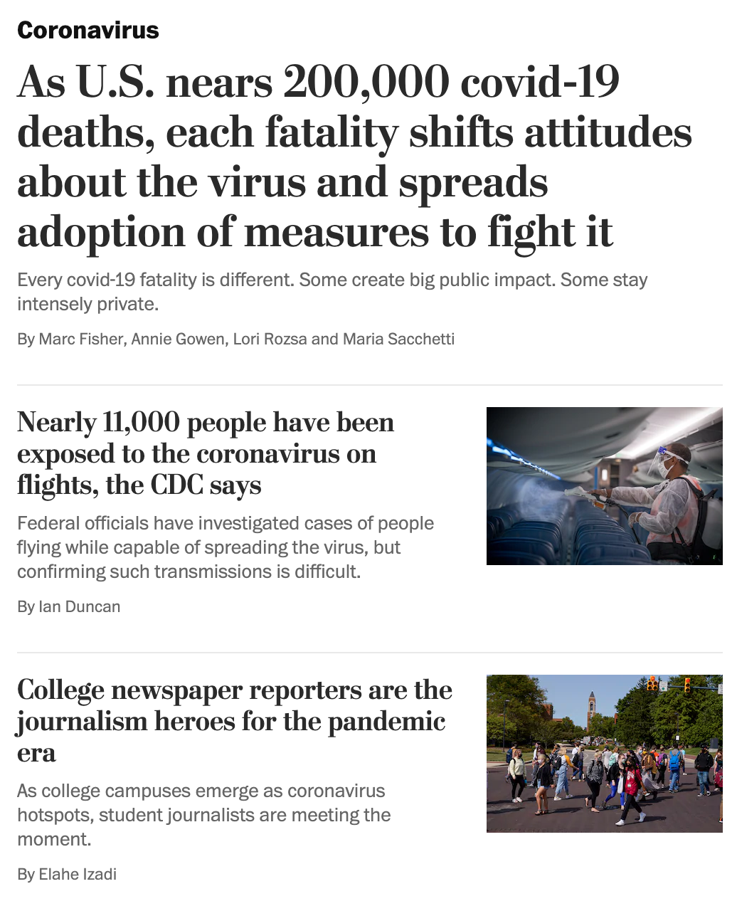 Right now on the front page, the Post is hard-shilling the 200,000 hoax, along with various hysterias.