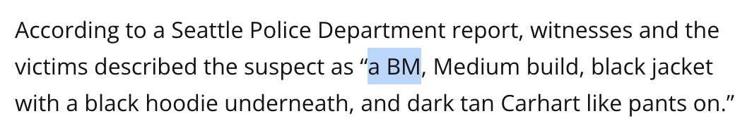 I actually don’t even know the history of the use of “BM” by the police or if it is only Seattle that does it. I’ve seen it several times, but it might have only been in Washington.