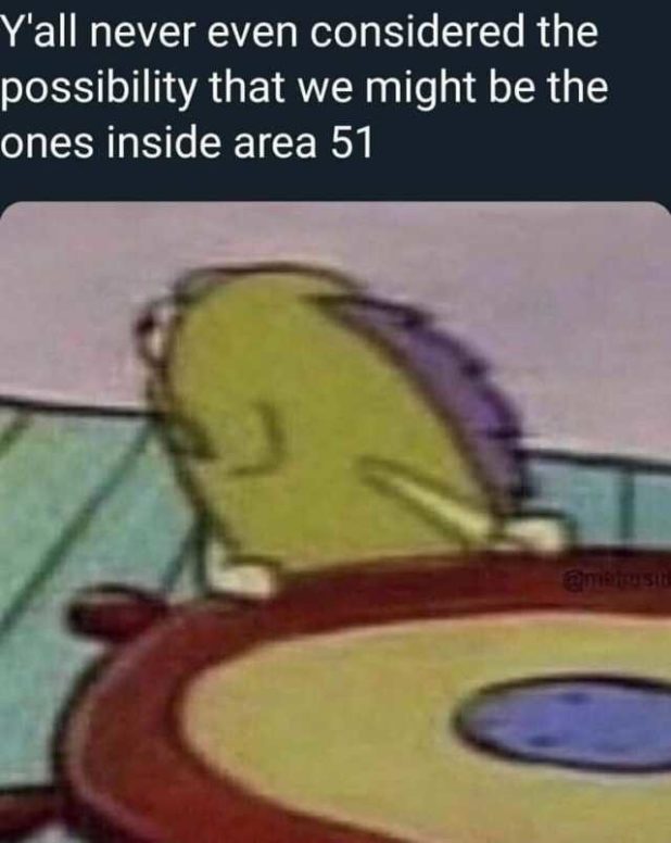 But on a more serious note, we have to consider that these “let’s see them aliens” memes the kids are making are absolutely lit:
