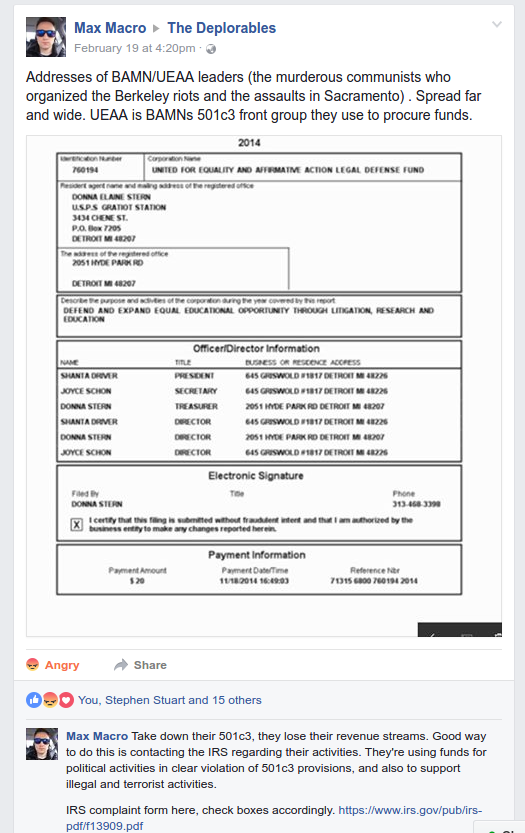 Nationalist activist Max Macro uncovered the financial backers of various violent antifa groups. Basically, this super-kikey organization, “United for Equality and Affirmative Action Legal Defense Fund” (UEAA) is a front group for radicals.