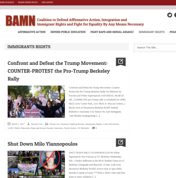 BAMN is one of the larger and better organized antifa organizations in America. They’re the people bussing in people to shut down Milo university appearances and attack Trump rallies.