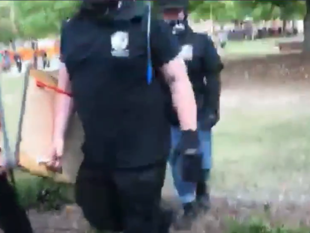 Unconfirmed reports claim a group of Antifa tried to attack the men on their way out by flipping over the barricades, but the TWP blackshirts were able to beat them back. Everyone appears to have gotten away safe for now, but this too is unconfirmed.