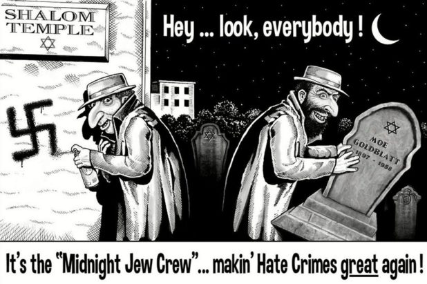 Seriously – is there a single one of these “swastika on a synagogue” cases that has not turned out to be a Jewish false flag (or gone mysteriously unsolved)? It is technically, theoretically possible, but I don’t remember a single such case.