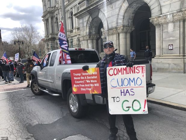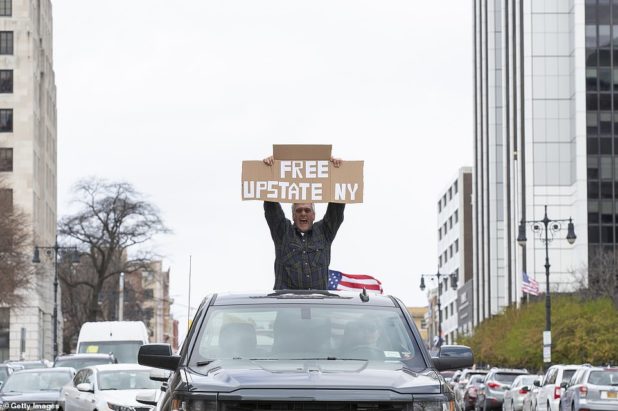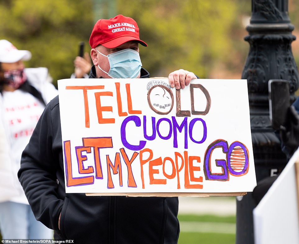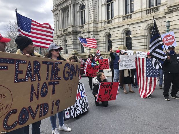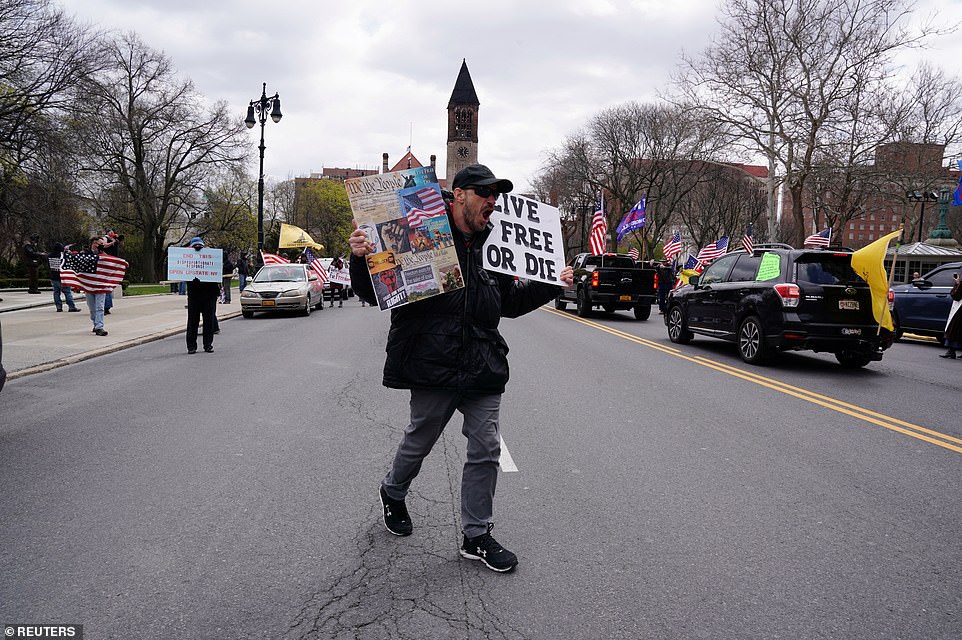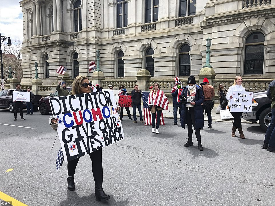 In Albany, New York protesters gathered in front of the State Capitol building on Wednesday afternoon in a protest organized by the group ReOpen New York State.