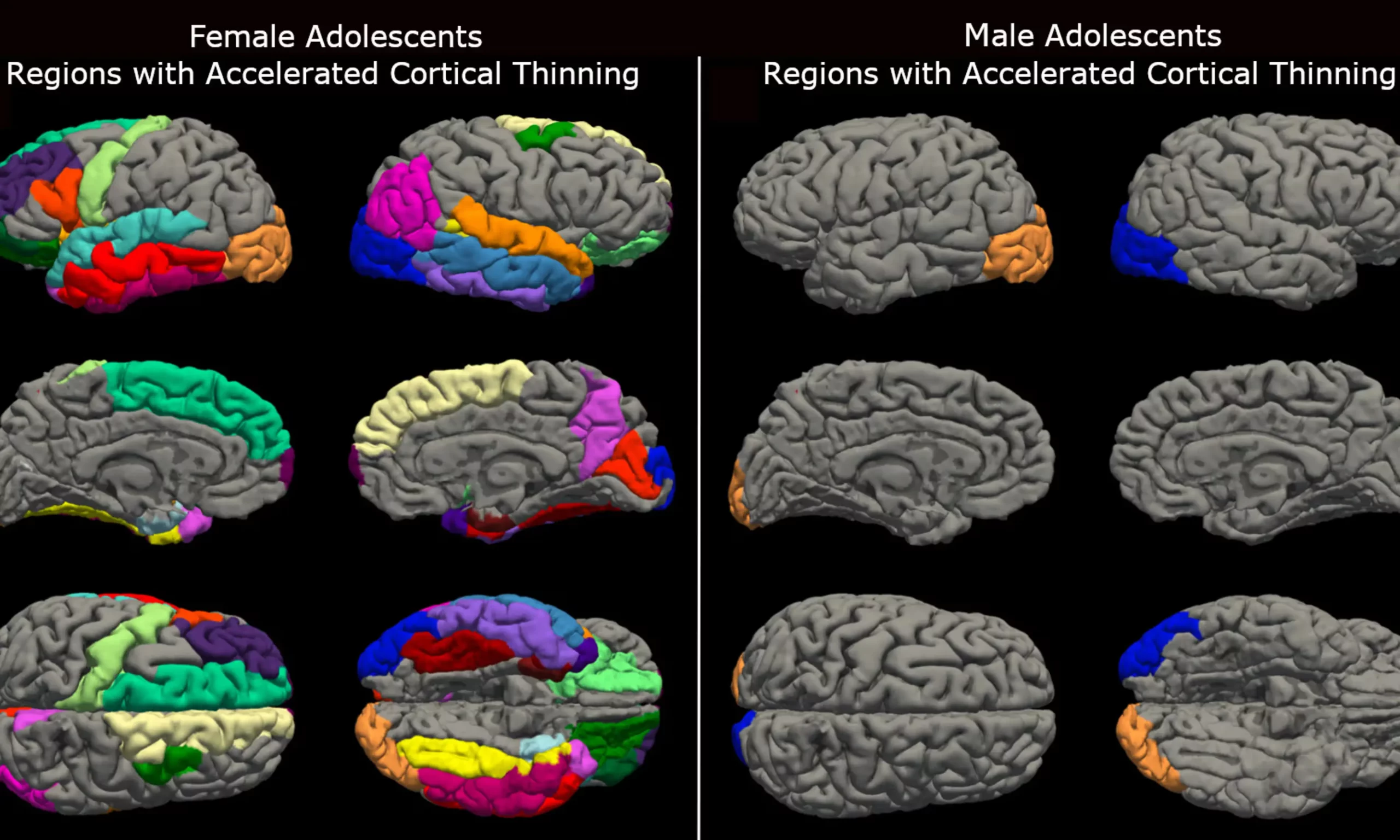 The researchers gathered MRI scans from 160 nine- to 17-year-olds in 2018 and used them to build a model of how the brain’s cortex normally thins during school years. Some cortical thinning is natural and an important part of brain maturation and specialisation in adolescence.