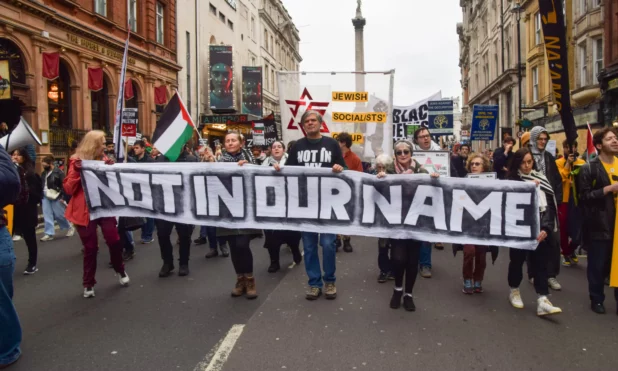 About 10,000 marched in London on Saturday. Along with other protesters, Jewish groups backed calls for a ceasefire, displaying banners calling for the Israeli leader, Benjamin Netanyahu, to secure a hostage deal and chanting: “Netanyahu, shame, shame, not in our name.”