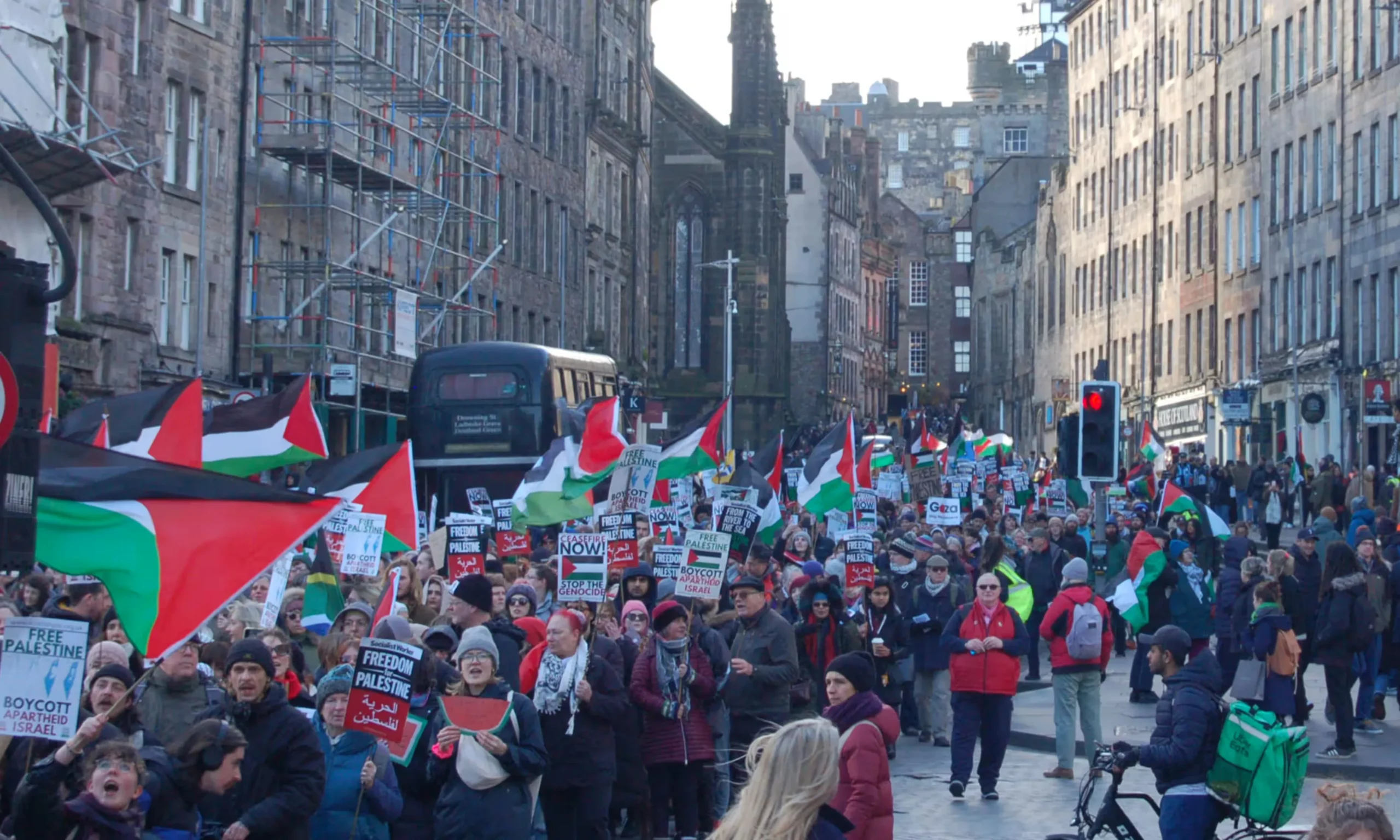 Thousands of pro-Palestine supporters also gathered in Edinburgh on Saturday in support of an immediate ceasefire in Gaza. Arranged by the Scottish Palestine Solidarity Campaign, spokesperson Mick Napier said: “Israel needs to act on last week’s Order of the World Court, which requires that it take measures to prevent further genocide, and stop preventing aid getting to the 2 million people of Gaza. The only way that is possible is with an immediate ceasefire, which is what we are calling for. While the Scottish Parliament has at least called for a ceasefire, the UK government, as usual, has been entirely complicit in Israel’s crimes.”