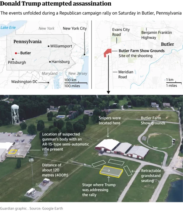 Demands for answers were mounting on Sunday as to how an armed man was able to get into position on a roof overlooking a rally and fire shots at Donald Trump – the 2024 presumptive Republican nominee – despite federal and local law enforcement presence and witnesses reportedly alerting police.