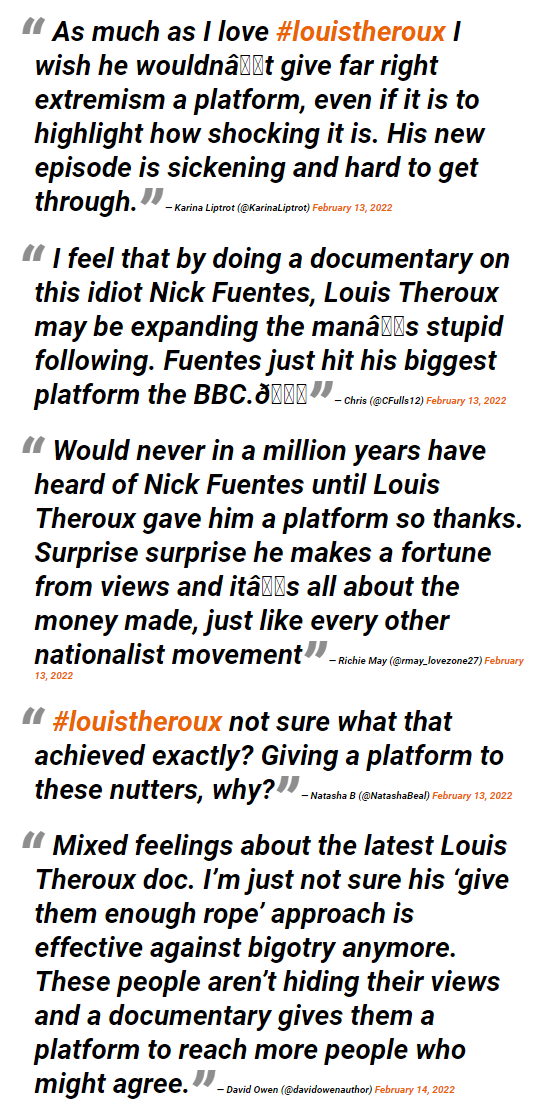 British documentary filmmaker Louis Theroux (pronounced “Lewis Thear-roocks) released a film on Nicholas J. Fuentes and the America First movement this week, and it was quite a doozy.